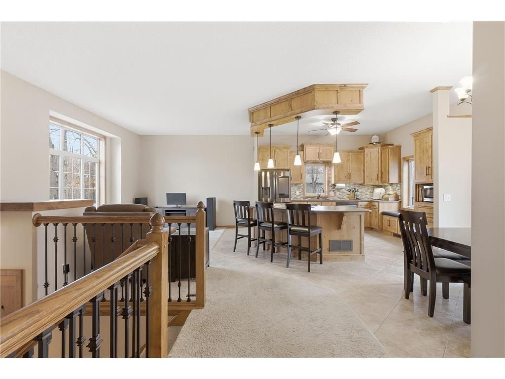 Tucked away on nearly 4 private acres, this property delivers the space, privacy, and functionality that's genuinely hard to find. A recent landscaping refresh, new driveway, and new sidewalk set the tone from the moment you arrive. Inside, the layout is practical and well-maintained. Updated kitchen with a large center island and gas oven, fresh paint, new carpet in all bedrooms, and added attic insulation. Three bedrooms on one level include a primary suite with a walk-in closet and private bath. The walkout lower level is built for real living, with a gas fireplace framed in rustic oak and stone, custom built-ins, a large family room, an additional bedroom, a finished bathroom, and laundry space. Outside, the deck overlooks expansive views and mature surroundings. But the real headline is the fully finished 30x40 shop with heat, AC, and updated electrical including 240V drops. A separate asphalt driveway leads straight to it, plus an additional 18x30 storage area with concrete floors and electricity. The attached garage is insulated, drywalled, and heated for year-round use. Newer roof, thoughtful updates throughout, and a setting that's hard to replicate. This one checks boxes you didn't even know to put on the list.