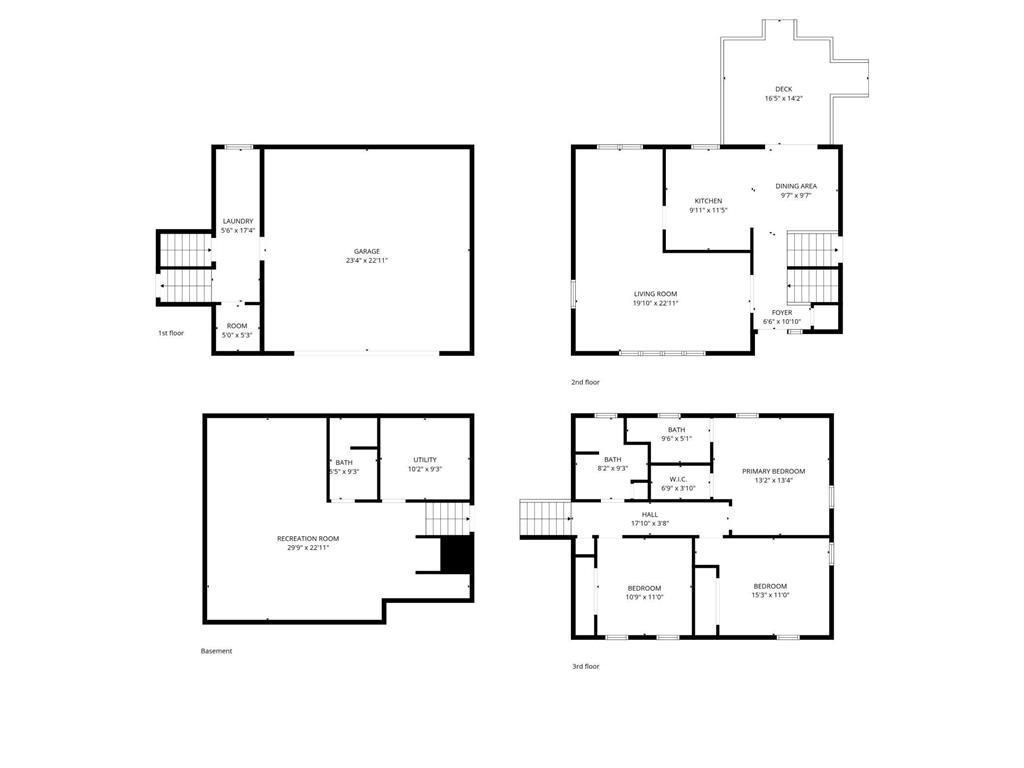 Spacious house with 3 big bedrooms (king beds fit!), guest and primary baths. Open foyer to living room, formal dining, and kitchen dinette leading to the deck. Fresh flooring & paint, new roof! Family room could be another bedroom or an office, bath included. Laundry's right off the garage, which is oversized with a wide driveway. Gentle slope for outdoor fun on a quiet street. Four levels offer convenience, privacy, and storage, plus an awesome backyard. Book your showing today!