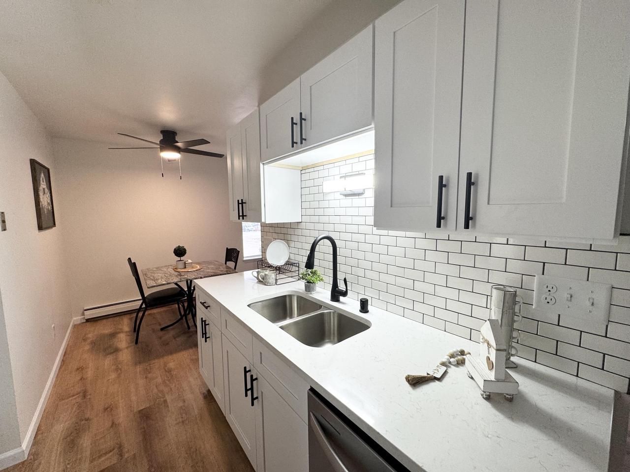 Beautiful newly remodeled 1 bedroom river view unit in the highly coveted RIVERS EDGE Condominium in Brown Deer. Kitchen complete with lots of new cabinetry, quartz countertops and appliances. For great ease and convenience separate bath and double sinks areas. As an added space in this second floor unit, spacious enclosed porch area. This updated unit also comes with 1 underground designated parking space, storage unit, heat, water and A/C. Rivers Edge offers many amenities: tennis court, clubhouse, pool, laundry room etc...Come take a look today, this unit with its comfort and style will not last long!
