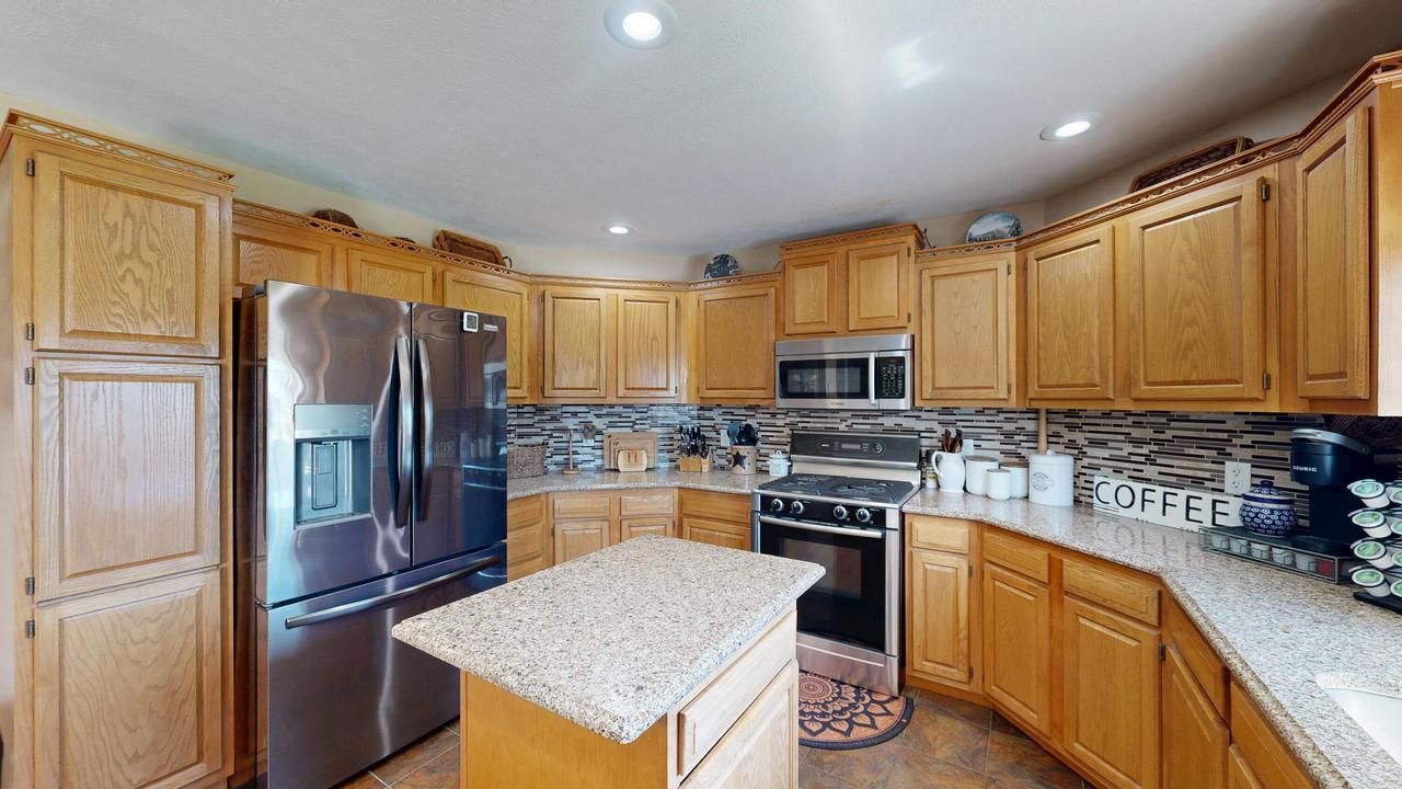 Spacious home in a quiet neighborhood, just minutes from Westby! The main level features a large living room, kitchen, dining area, and a primary suite with private bath and walk-in closet. An additional two bedrooms and a full bath are also located on the main level. The finished lower level offers a fourth bedroom, full bath, family room with a built-in bar, and walk-out patio access, perfect for entertaining. Enjoy a generous front and back yard with a fire pit, back deck, and space for gardening or play. The attached 2-car garage plus an additional detached 2-car garage provide ample storage and versatility.