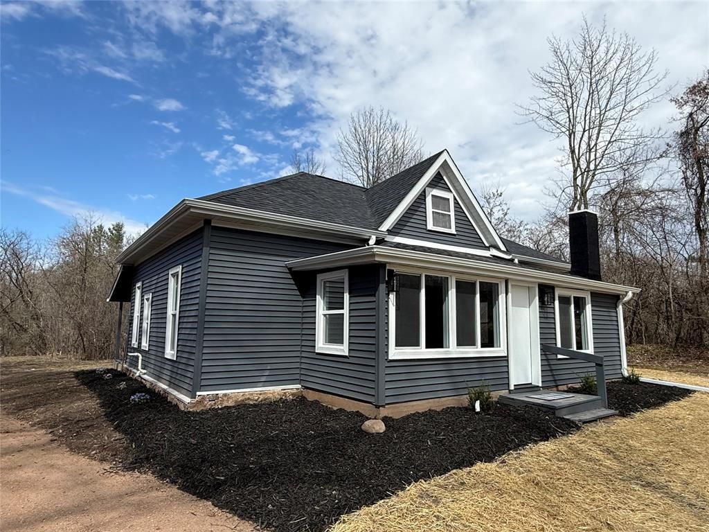 Essentially new country home!! Check out this beautifully remodeled home nestled on a private 3-acre wooded lot just north of Shell Lake. The fully renovated interior features a stunning new kitchen with updated appliances and convenient main-floor laundry. No detail was overlooked; extensive upgrades include a new roof, maintenance-free siding, windows, lighting, doors, luxury vinyl plank and carpet flooring, fresh paint, plus updated electrical and plumbing. Heating is efficient and versatile, featuring a newer furnace (2022) along with a cozy wood-burning stove as an additional heat source. Relax on the covered patio, perfect for grilling or enjoying peaceful summer evenings. The oversized 20x40 ft garage offers storage for vehicles, toys, or hobbies. Ideally located just a mile from the popular Shell Lake beach, near ATV and snowmobile trails, and surrounded by numerous pristine fishing lakes, this property offers the perfect blend of comfort, recreation, and privacy. Move-in ready!
